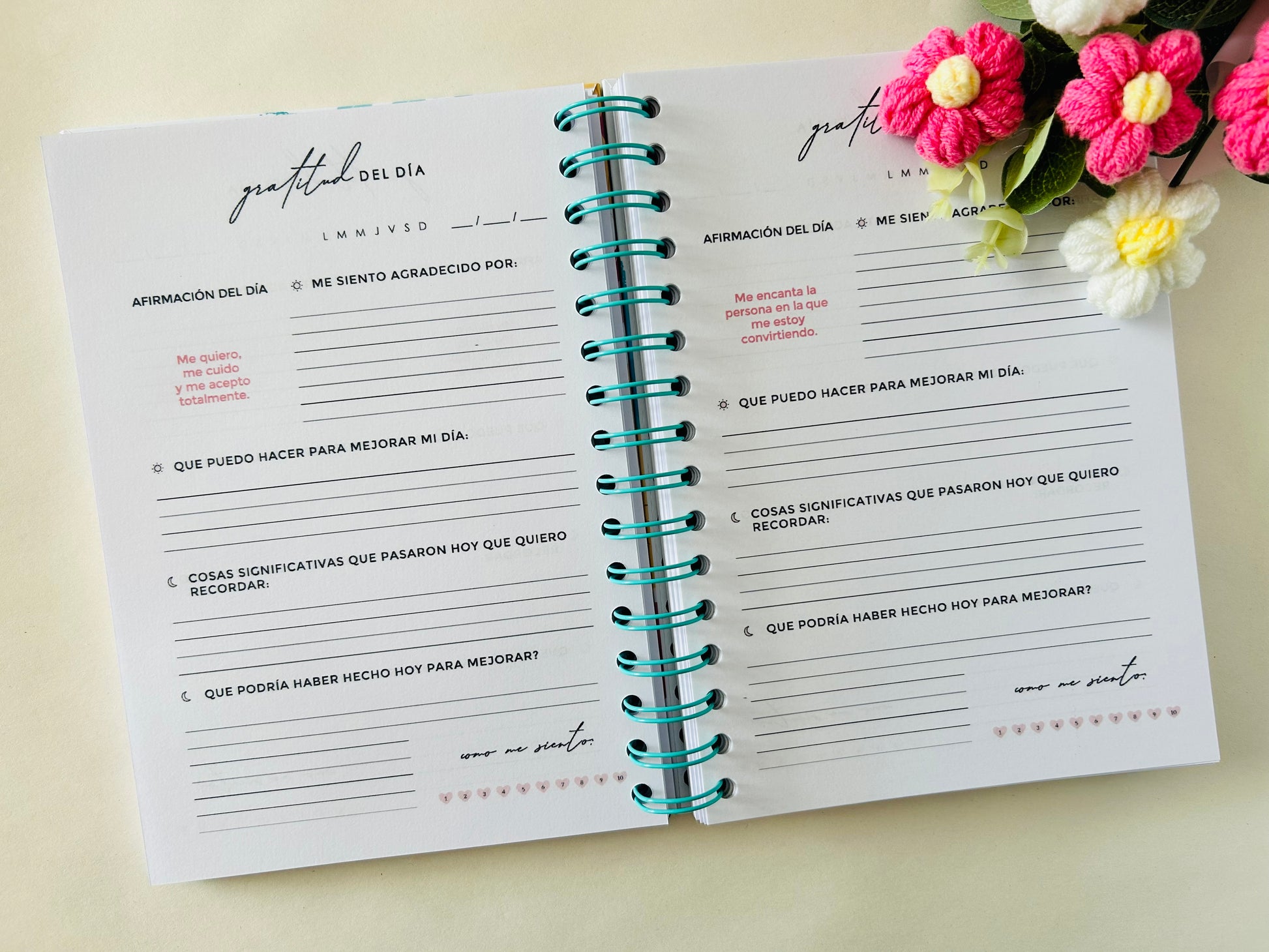 El Diario de Gratitud es un espacio creado para pausar, reconocer y agradecer lo que muchas veces pasa desapercibido. Cuenta con hojas completamente personalizadas, tapa dura resistente y anillado metálico, pensado para acompañarte día a día con comodidad y durabilidad. Escribir gratitud transforma la mirada, calma el corazón y nos ayuda a conectar con lo bueno, incluso en medio de los procesos. Un cuaderno ideal para cultivar una vida más consciente, presente y agradecida.